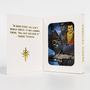 The Varric Pin Set comes in a 4”x 1”x 5.31” gift box with gold Kirkwall logo on the lid and Varric Tethras printed on the sides.