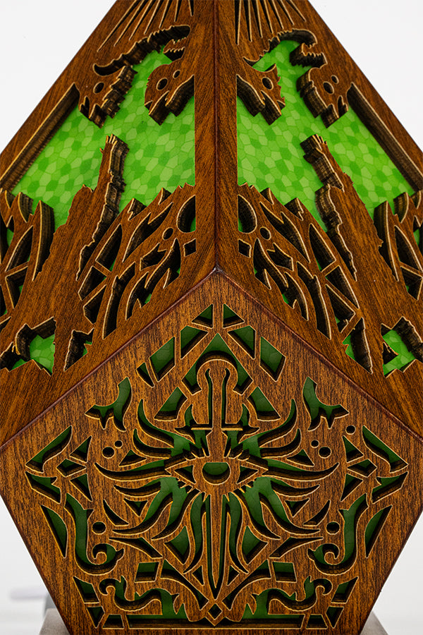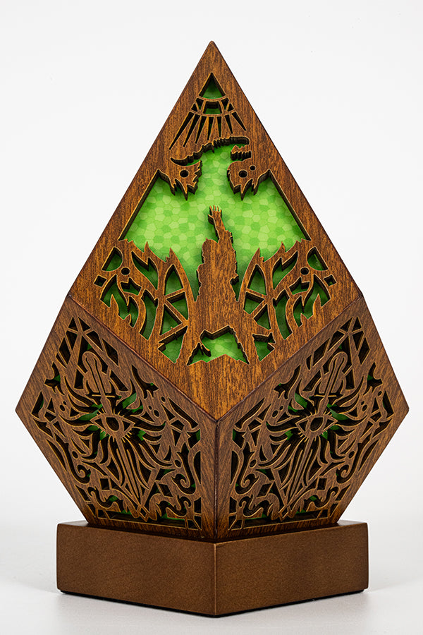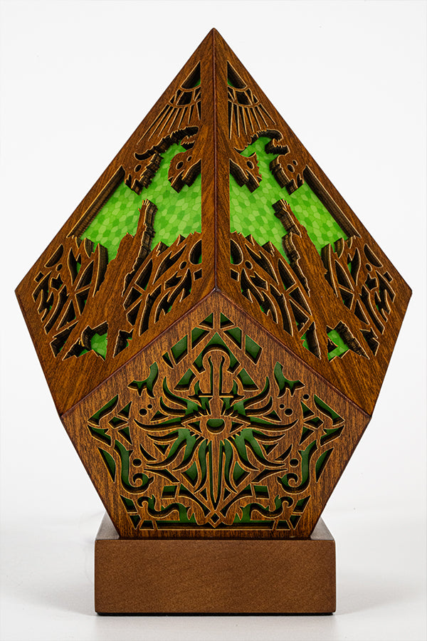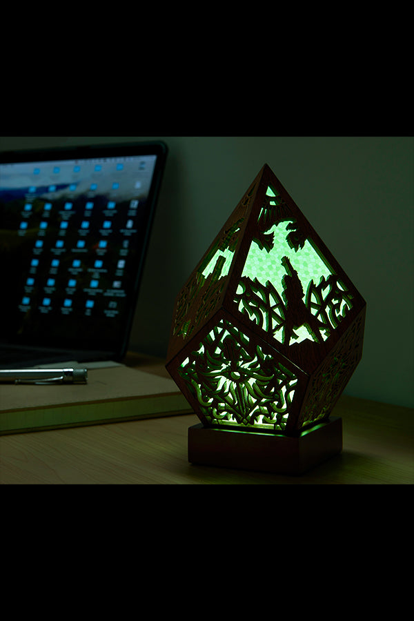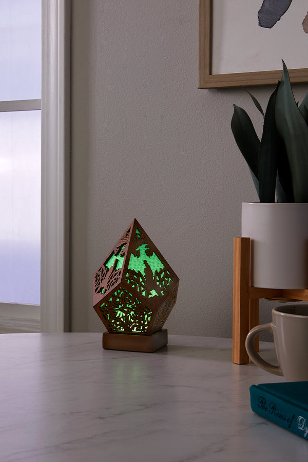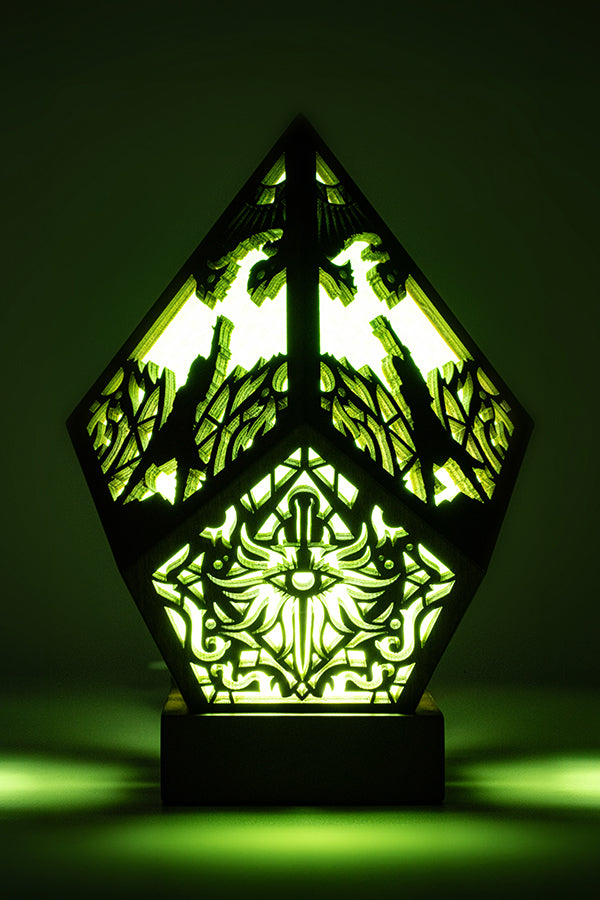 ¿Reconoces este resplandor verde? ¡Ilumina tu espacio con el impresionante poder del Inquisidor! La luz caleidoscópica del Inquisidor de Dragon Age es una obra de arte polifacética que utiliza la luz y las siluetas para recrear imágenes icónicas de Dragon Age: Inquisition.