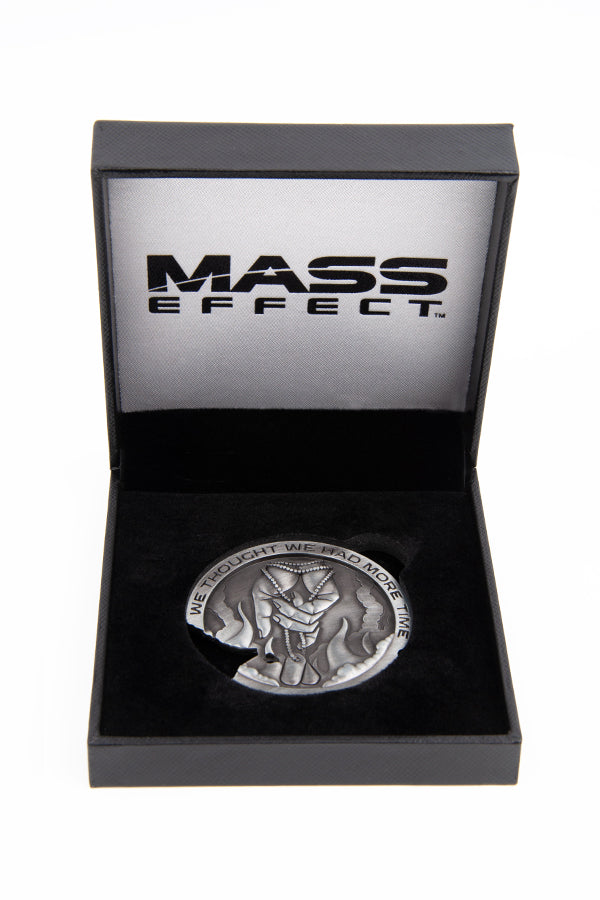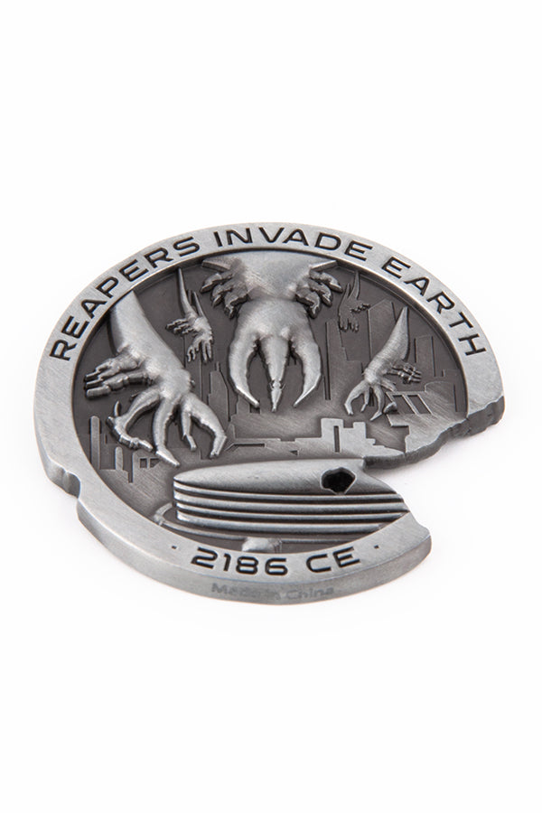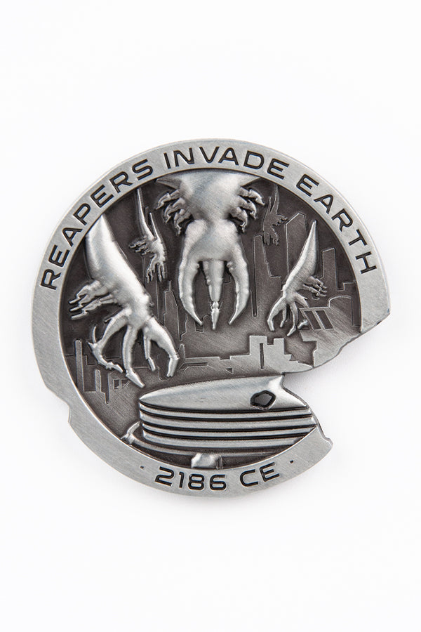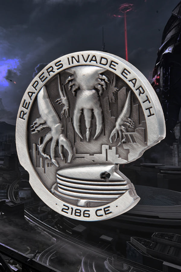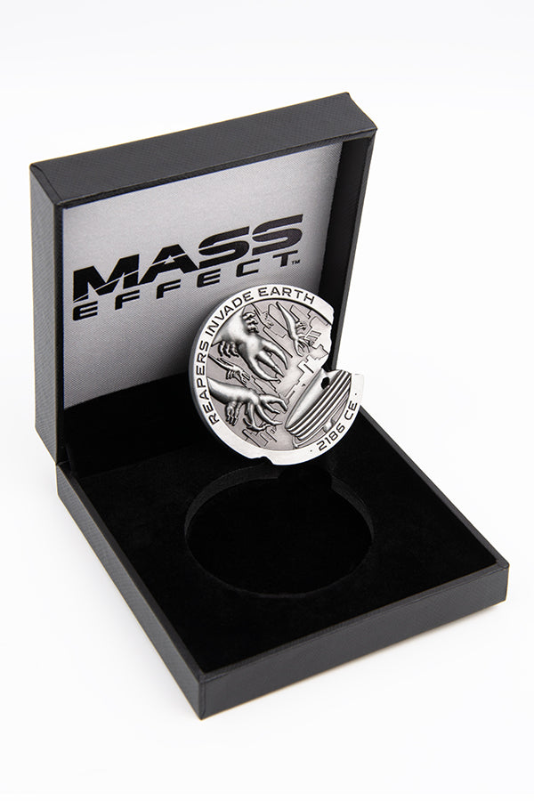 En quelques heures, les Moissonneurs ont détruit les défenses de la Terre et réduit les humains à l'état de ressources organiques. La pièce de collection Mass Effect : The Fall of Earth Challenge Coin rend hommage à ceux qui sont tombés au combat et à ceux qui ont gardé espoir et se sont battus pour continuer.