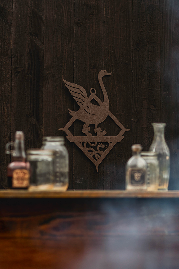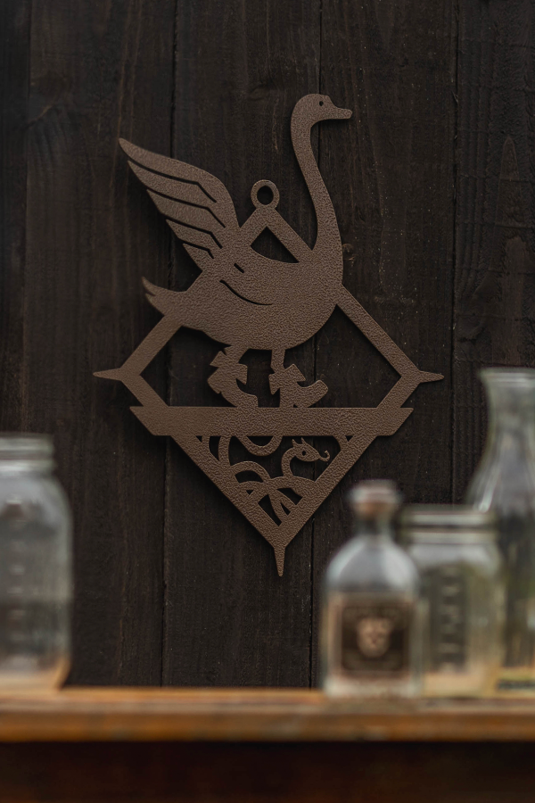Lasciate che questo grazioso cigno impettito vi guidi verso l'esperienza del pub di Tevinter con l'opera da parete in metallo Cigno acciottolato di Dragon Age!