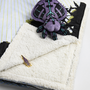 - Materiale: 100% poliestere / parte anteriore stampata 180 gsm flat minky / parte posteriore 200 gsm sherpa